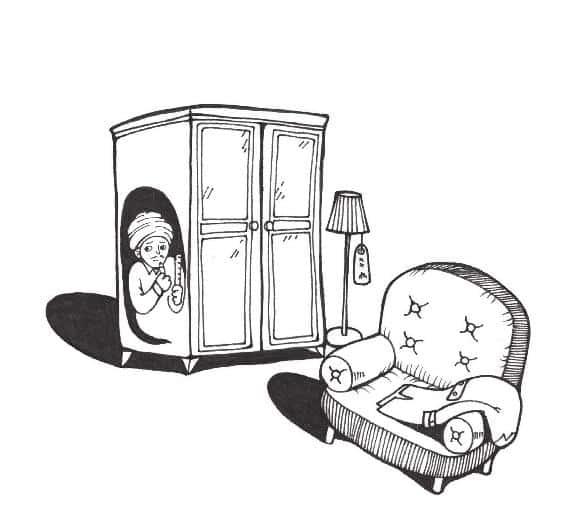 如果医生说的话是真的,印度朋友觉得自己必须马上喝水了。不管衣柜门外是敌是友,阿贾再一次推了推衣柜的门儿,想出来。这是个生死攸关的严肃问题。但是他的努力又一次失败了。手臂毫无力气,不能像他的宝莱坞偶像们在电影里那样,轻而易举就能打破衣柜的门,当然,也许他们面对的衣柜不是宜家出品的。